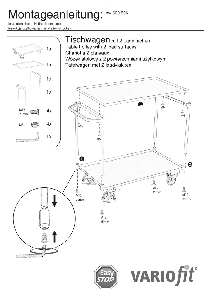 Cărucior metalic cu polițe etajate tip cuvă vană tavă captare și retenție VARIOfit