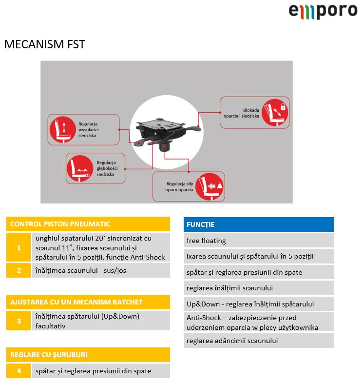 - permite înclinarea sincronizată și dinamică a spătarului și a șezutului